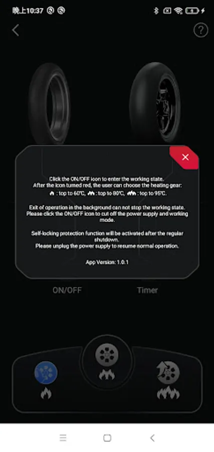 Connect the tyre warmer via Bluetooth to complete the heating, timing, disconnection and other functions of tyre warmer.
