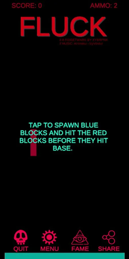 Destroy as many Red blocks as you can with the blue blocks which you can spawn by tapping the screen. The Randomness, speed and rate at which Red blocks appear will increase as you progress.