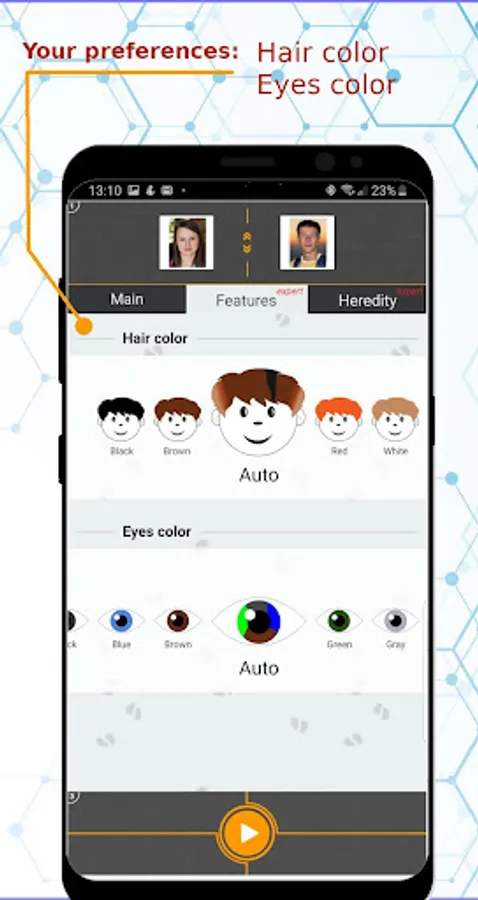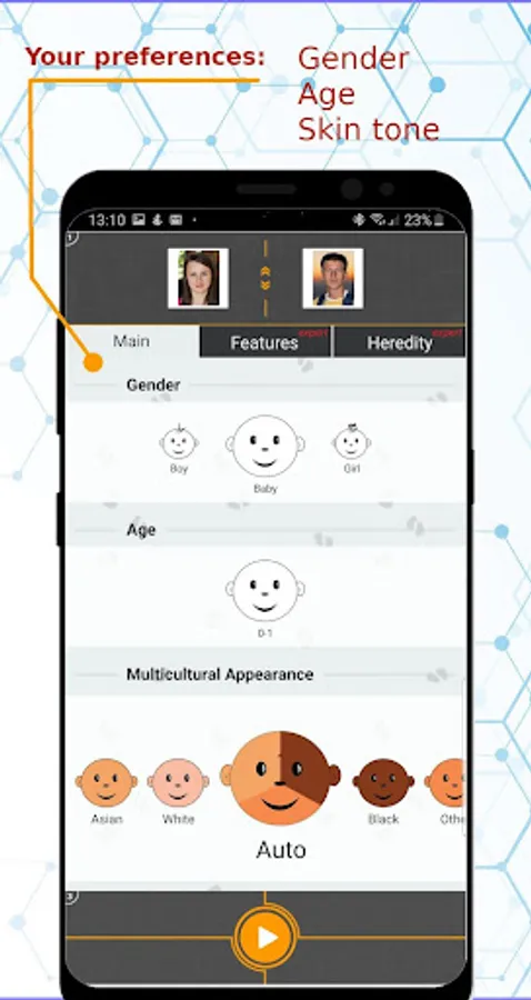 The program algorithms analyze the faces of the parents and automatically select the proportions of inheritance and other characteristics.