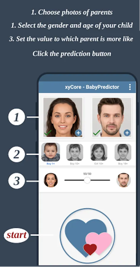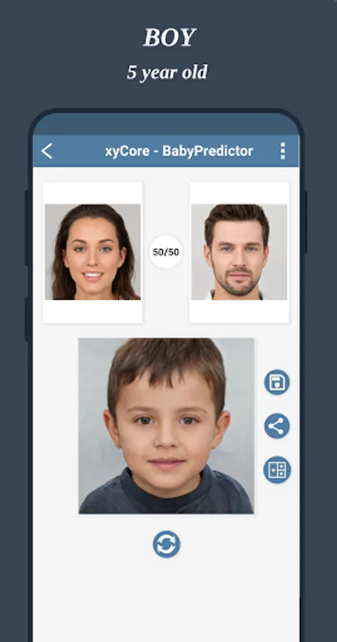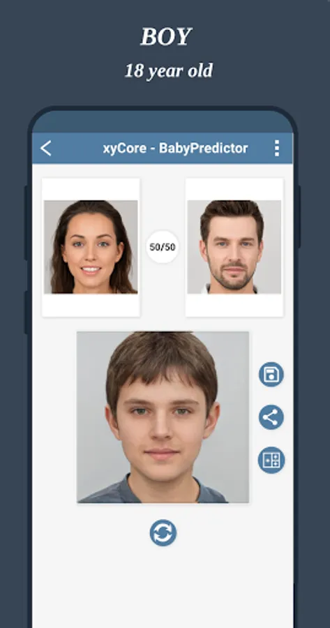 Our app scan parents faces and analyze facial features to make a prediction about your future baby's face.
