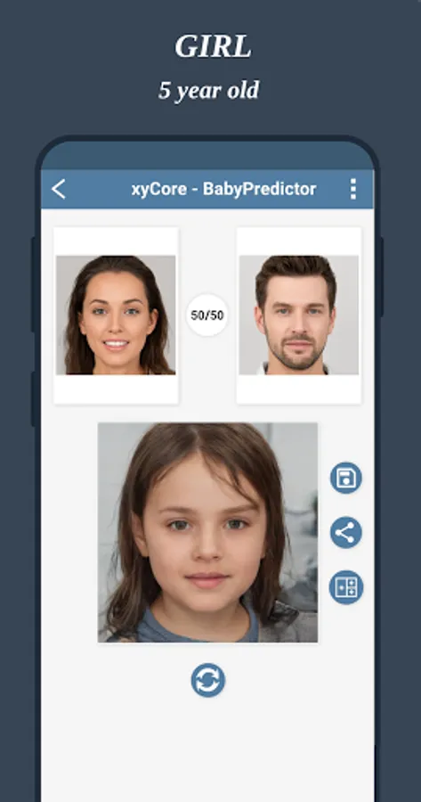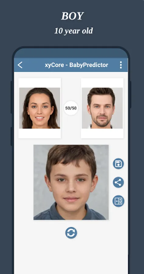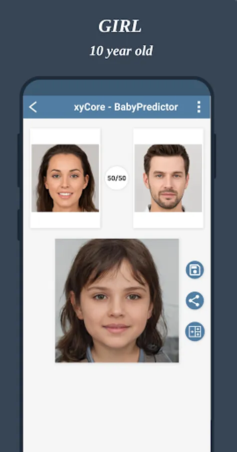 You can see how your child will look if he looks more like a dad or a mom - just change the tracking percentage