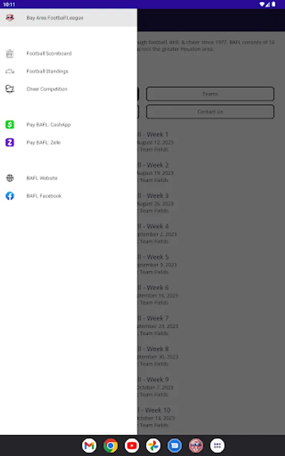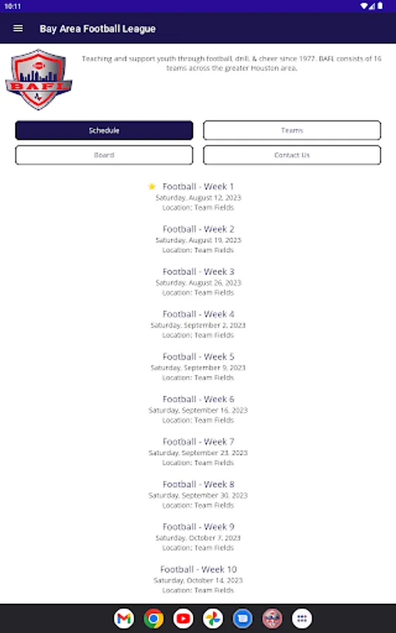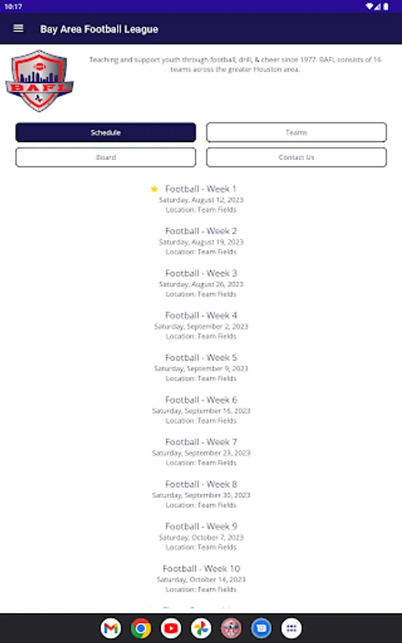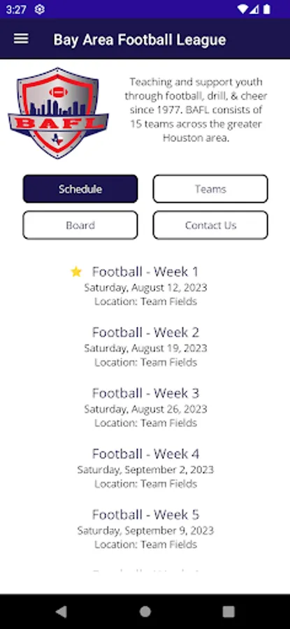 This is the official app of the Bay Area Football League (BAFL). The app lets parents, players, and volunteers keep up with league information, contacts, scores, and competitions. Useful all season long, but a must-have for BAFL competitions.