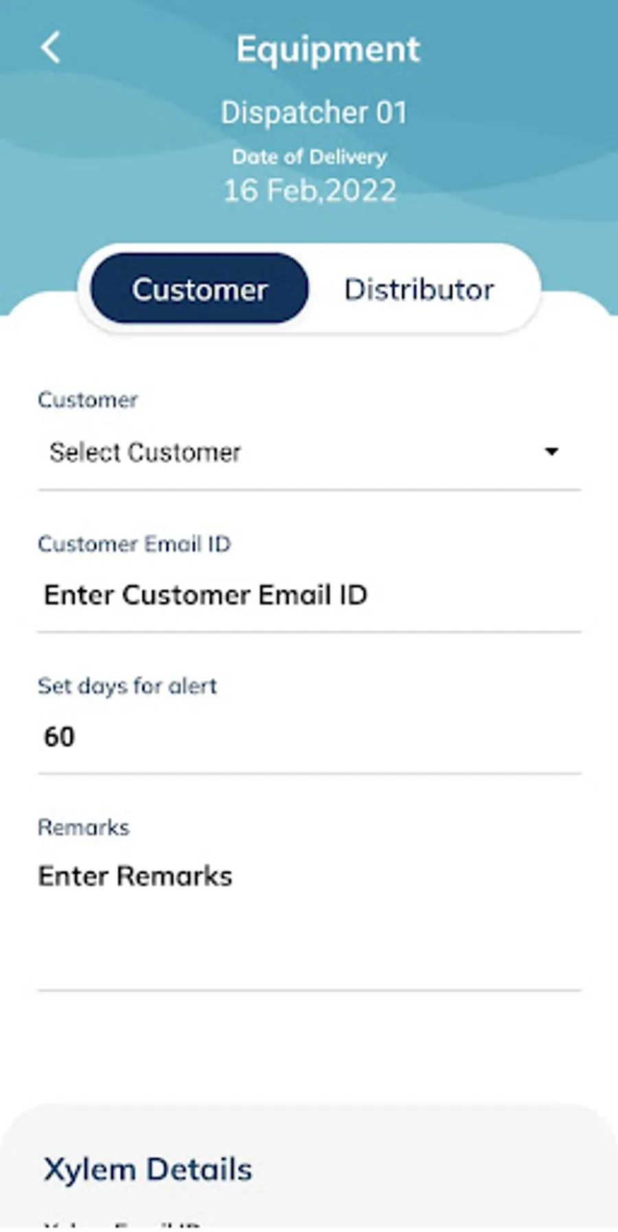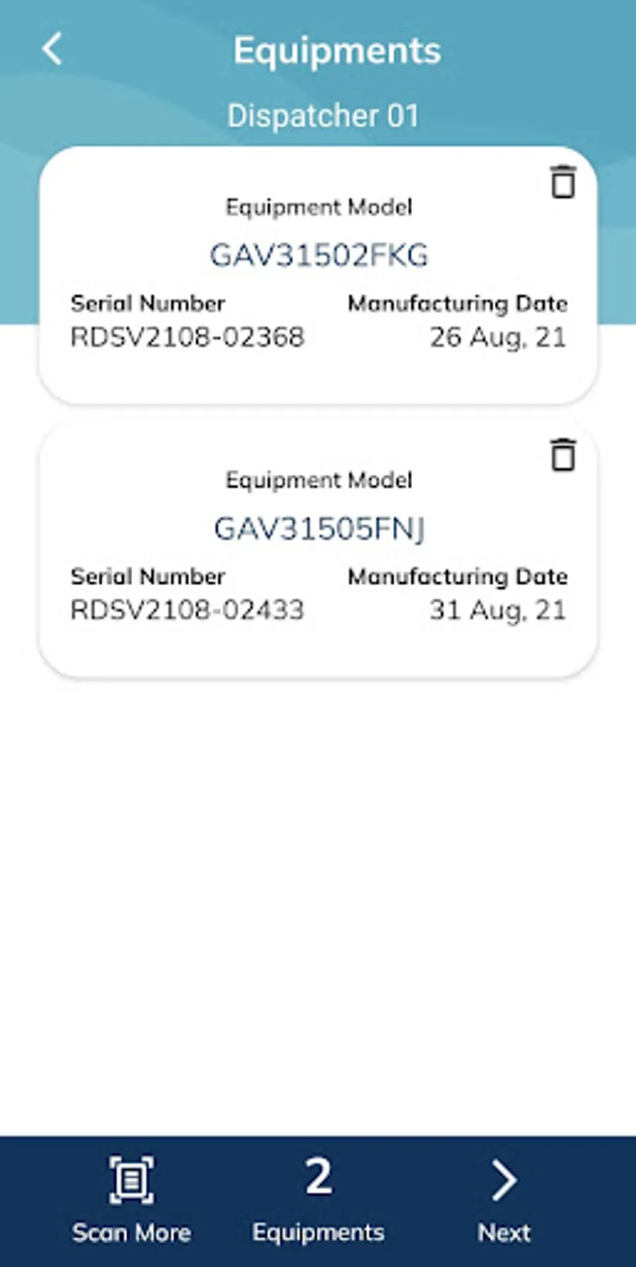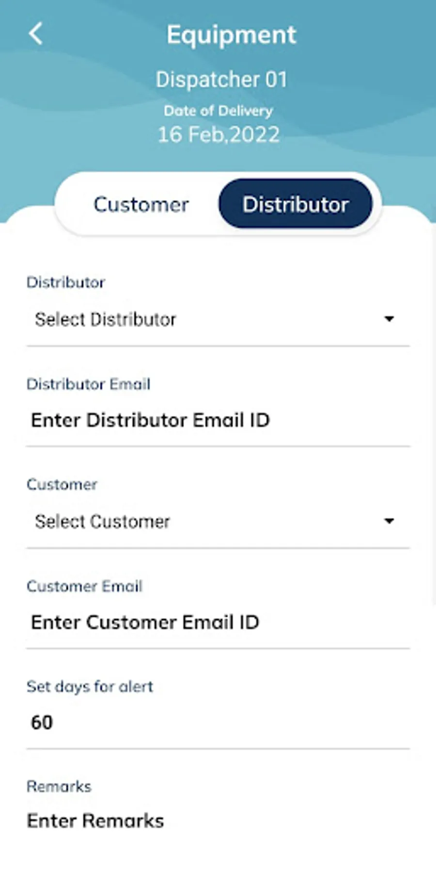 The mobile application is for scanning the QR code of all equipment dispatched from Calamba factory. Application has multiple logins - Customer, dispatcher and distributor.