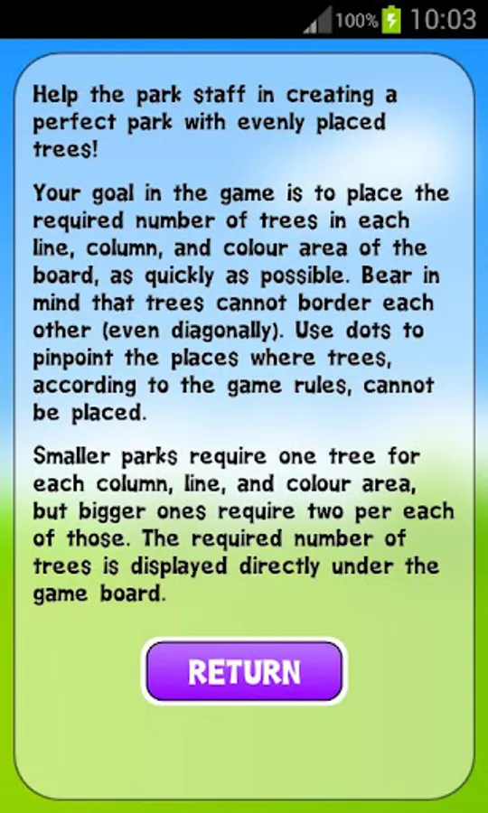 Do you like sudoku, chess or other games that can challenge your brain? You'll certainly love Parks, then! It is a logic game based on planting trees in parks. Help the staff of the park and plant a given number of trees in each column, line, and color area of the board. Try to achieve this as quickly as possible.