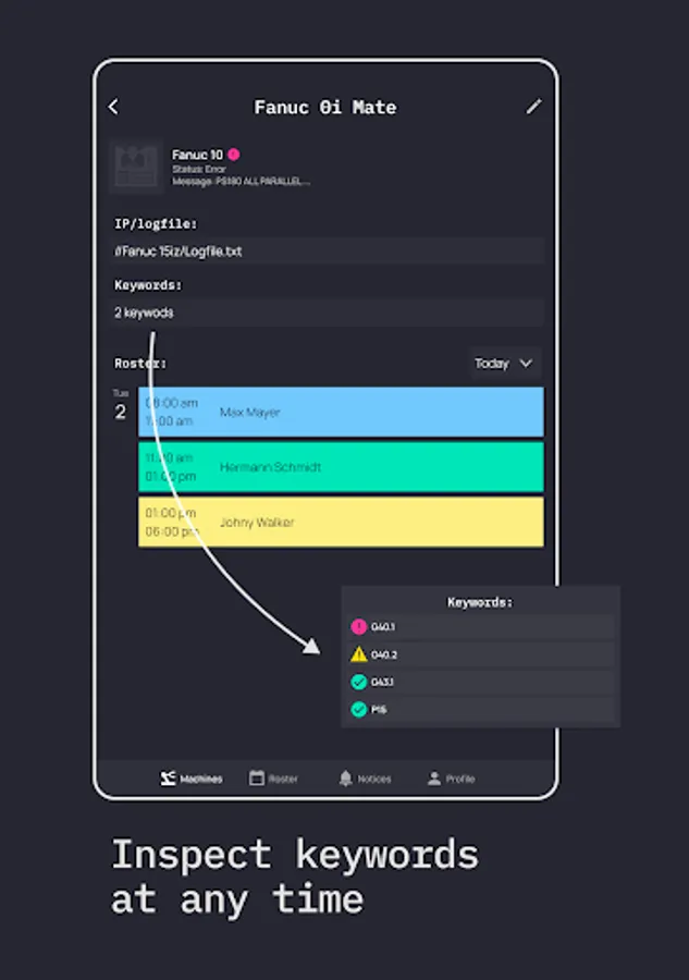 Over the last years we have been working on developing a CNC monitoring system that allows precise control of CNC machines, receiving status messages on user-defined machine signal events anytime, anywhere.