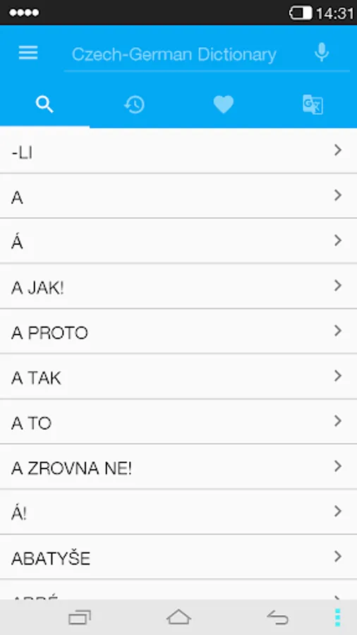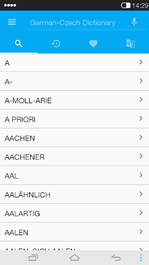 German<->Czech DictDroid is "offline dictionary" (doesn't require internet connection) with features:
