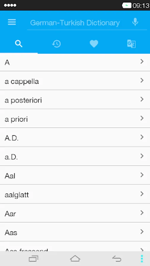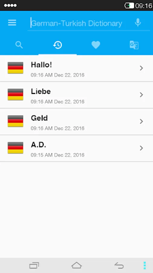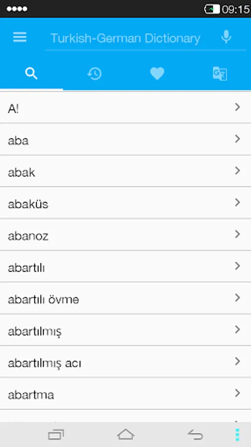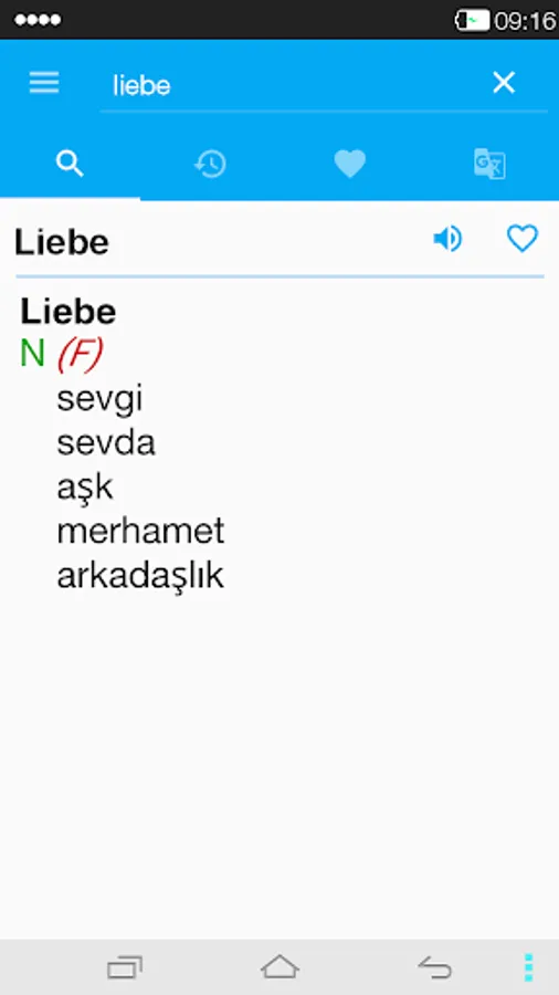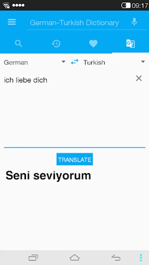 German<->Turkish DictDroid is "offline dictionary" (doesn't require internet connection) with features: