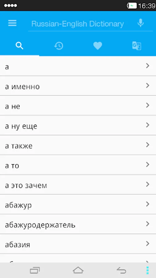 English-Russian DictDroid is "offline dictionary" (doesn't require internet connection) with features: