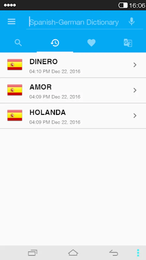 Spanish<->German DictDroid is "offline dictionary" (doesn't require internet connection) with features: