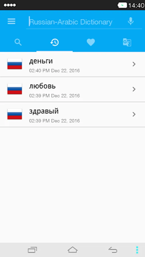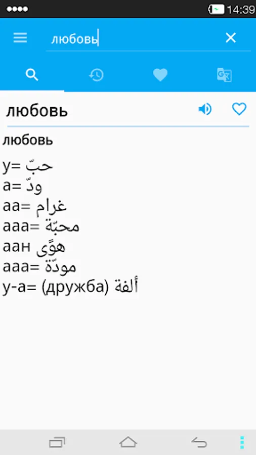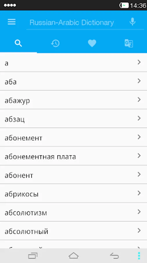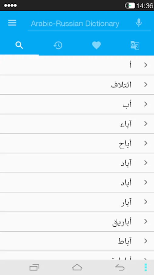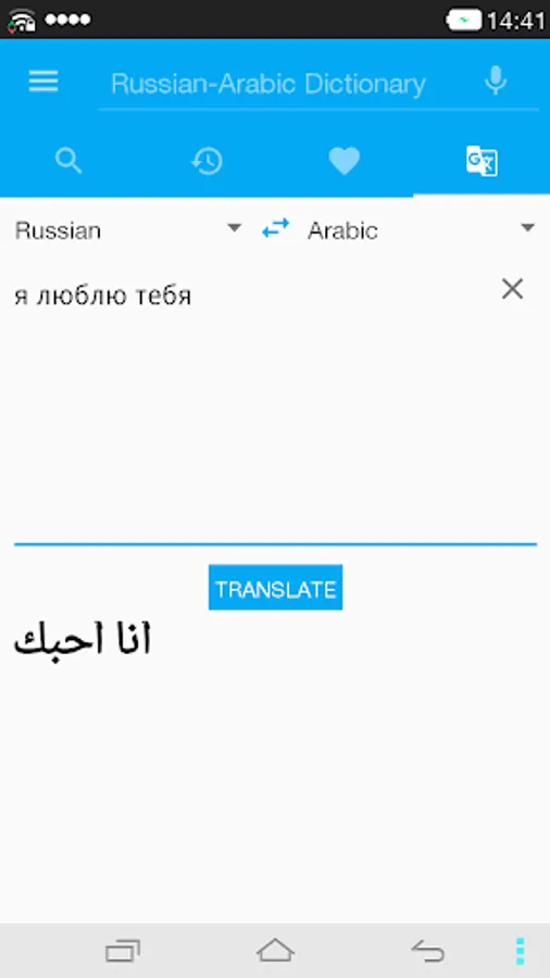 Russian<->Arabic DictDroid is "offline dictionary" (doesn't require internet connection) with features: