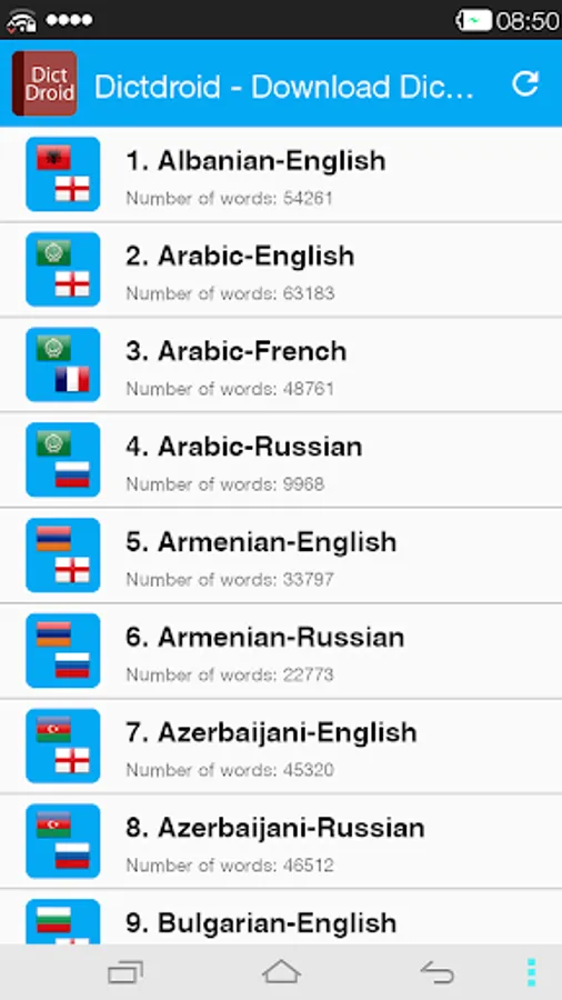 DictDroid is free offline dictionary and supports multilingual dictionary (doesn't require internet connection) with features: