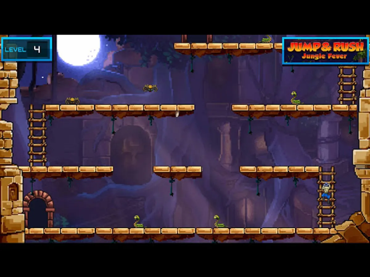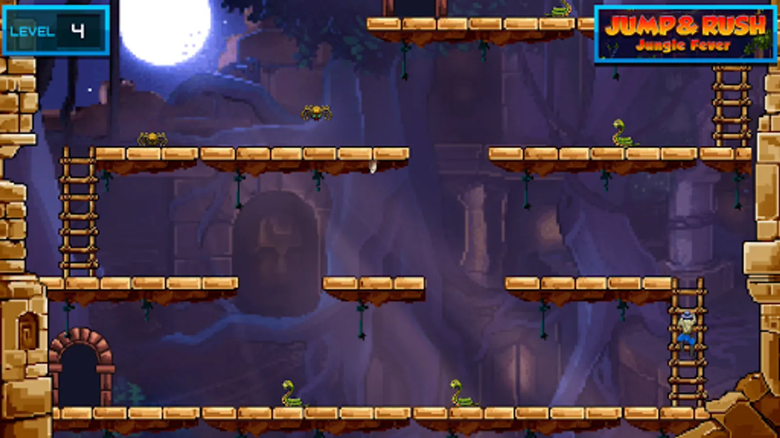 Retro-action in the jungle! Jump & Rush is an arcade-inspired fast-paced platformer.