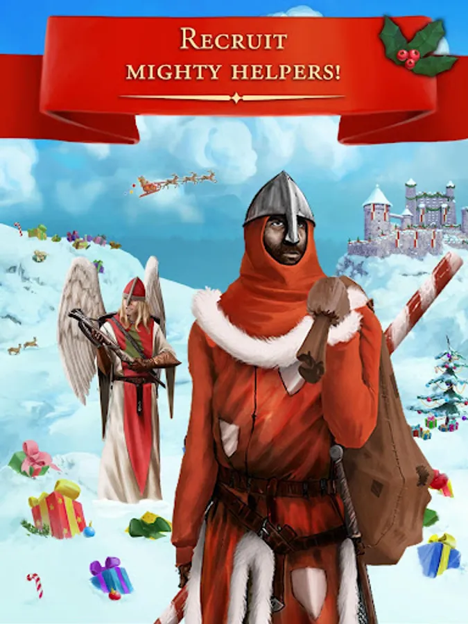 Play the popular medieval MMOG and experience its Christmas setting! In the X-Mas Edition of Lords & Knights you lead your conquests throughout the snow-covered maps, accompanied by atmospheric Christmas music. Who says that the top of the rankings cannot be reached with candy canes, tinsel and Christmas candles? Spearmen, Lancers and many other units are already prepared and powerful during the Christmas season!! Find the many hidden animations that tune you into one of the most wonderful times of the year and let yourself be enchanted by the special sound effects. Even Santa Claus himself was spotted in one or the other of your castles - can you find him??