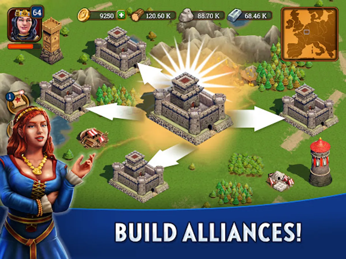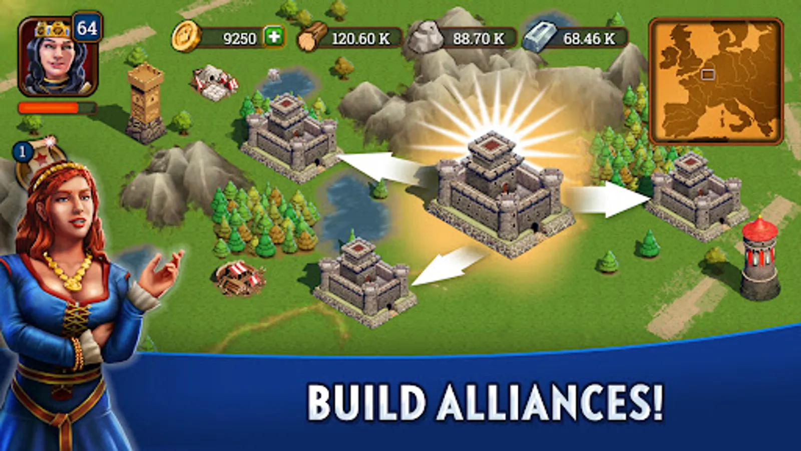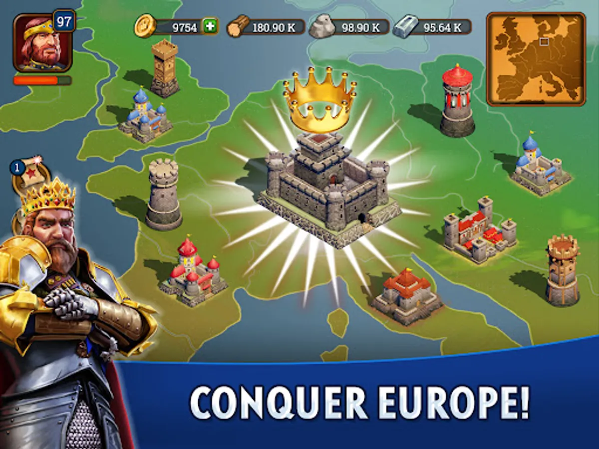 Show EVERYONE that you are the rightful RULER of Europe or create your own little REALM away from all the hustle and bustle of the mighty KINGS and ALLIANCES. Find your OWN way and experience an incredible medieval world full of fun and challenges in MEDIEVAL KINGDOMS!