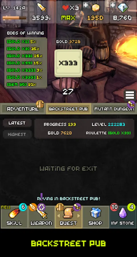 - 3 game modes of Adventure Quest, Backstreet Pub, Mutant Dungeon