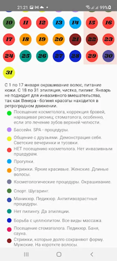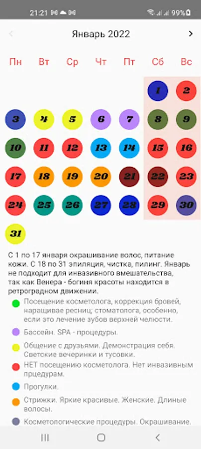 Beauty is a terrible force, terribly expensive and long, we will correct it, and we will make an offer to a highly respected female audience to purchase this Beauty app - battering ram. Thus, you save your time and money. What's in this app? - Days when certain beauty procedures will be successful! and the days when doing anything with the face is simply dangerous. For example, in January 2022, it is absolutely forbidden to do invasive procedures, because the result will be quite the opposite.