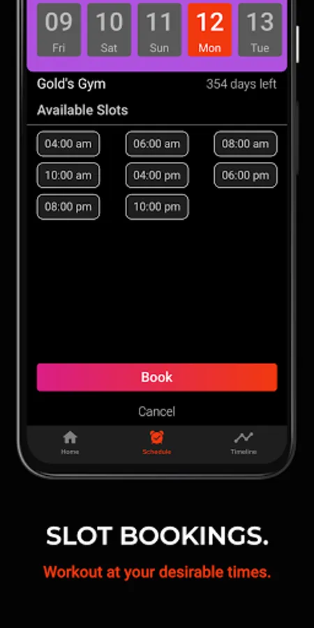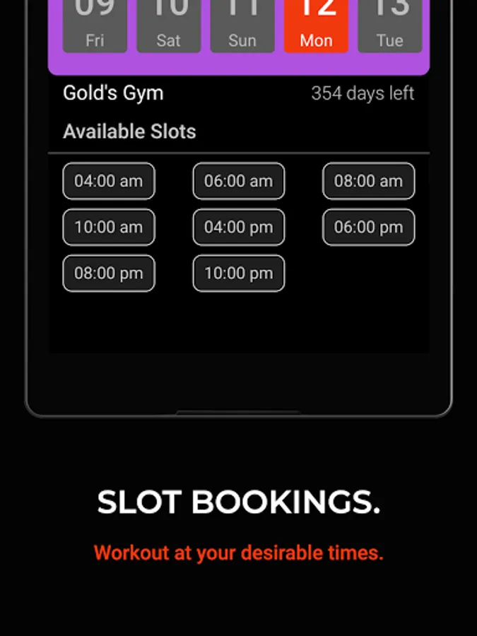 Slot booking: No more over-congested space! No more fussing over machines or waiting for your turn to arrive to perform your sets. All you need to do is book your slot and get your personalised training session at your convenience.