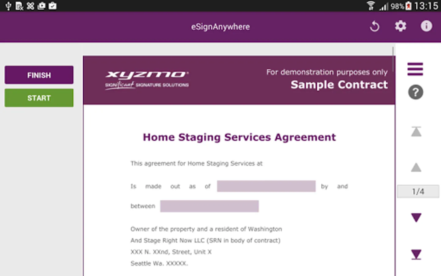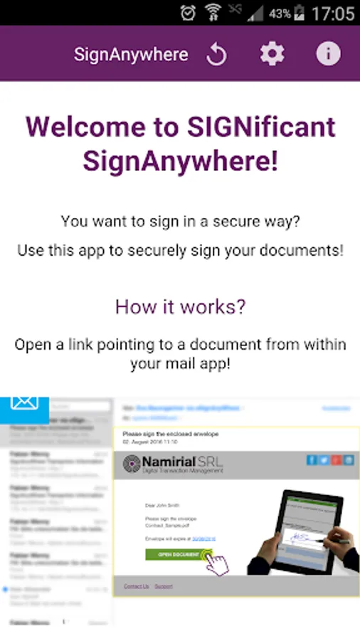 Please note that an internet connection is required while signing a document with SIGNificant SignAnywhere, because the documents are processed online on our server. Therefore SIGNificant SignAnywhere works best over WiFi or high speed cellular data, it might be slow over EDGE.
