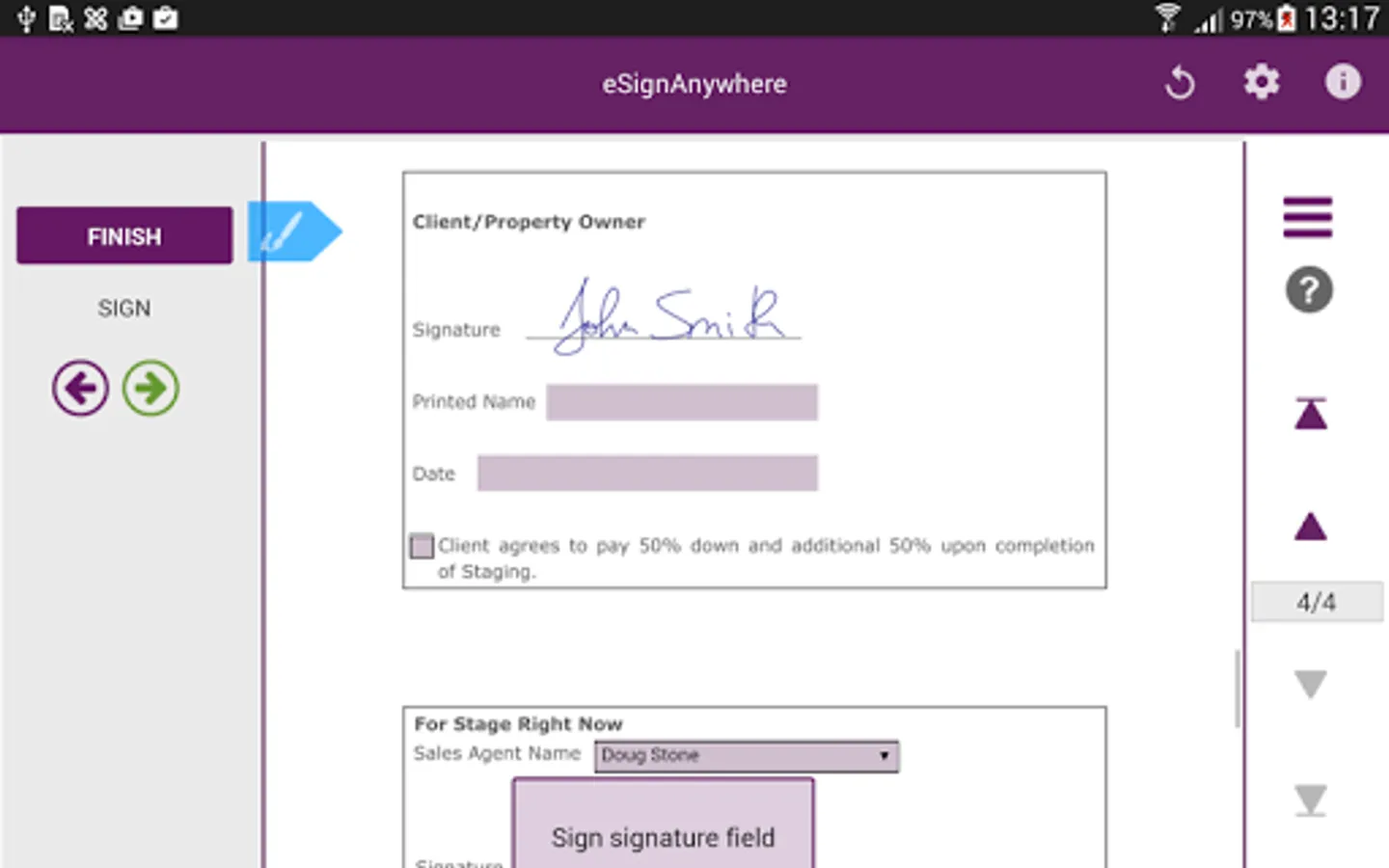 * Browse through Multipage Documents – Browse and review multipage documents before you sign them. Especially useful for field agents to get documents signed in person, in real time, by presenting a document to a client on a tablet.