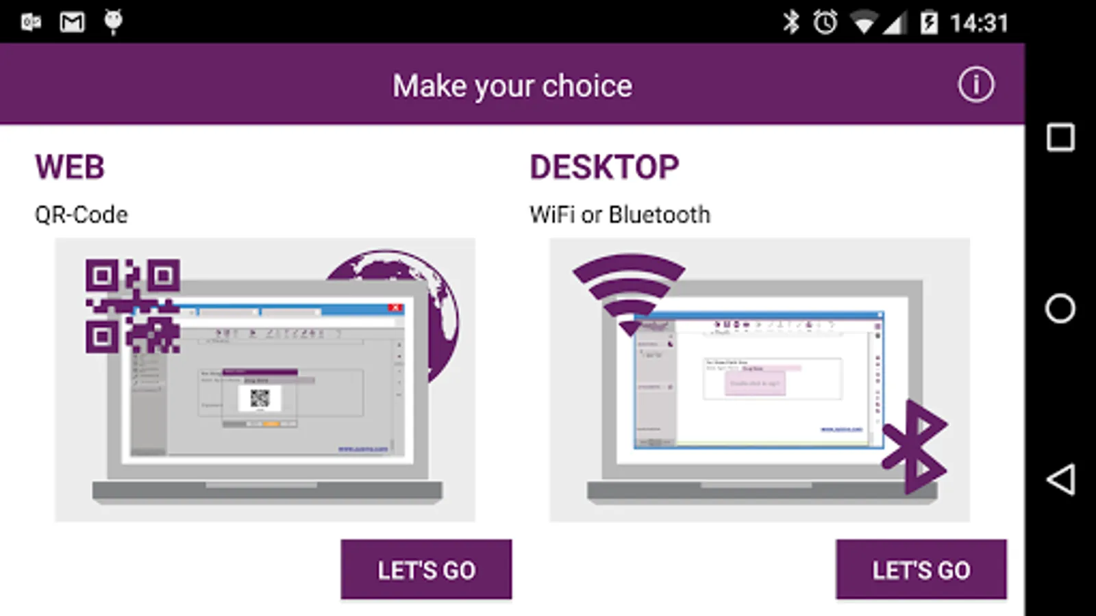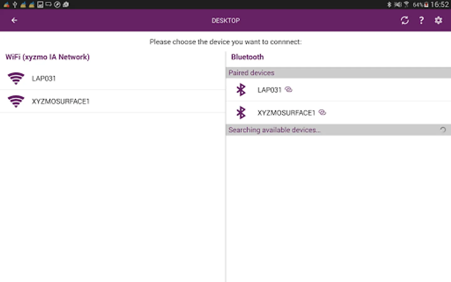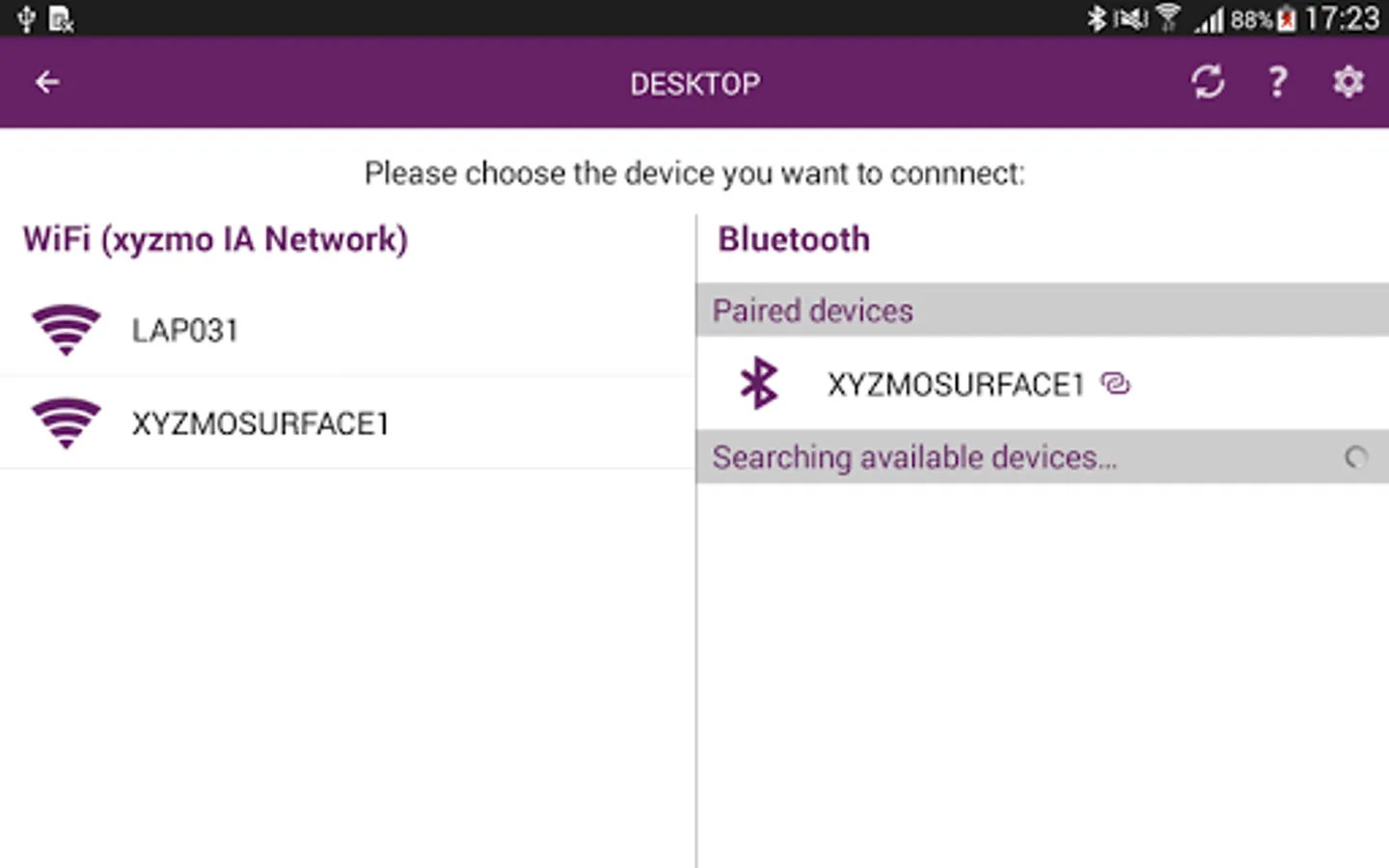 • Desktop: Establish a connection via WLAN or Bluetooth between your computer and the smartphone in case you use the SIGNificant desktop application. Then select your computer from the list shown in the App.