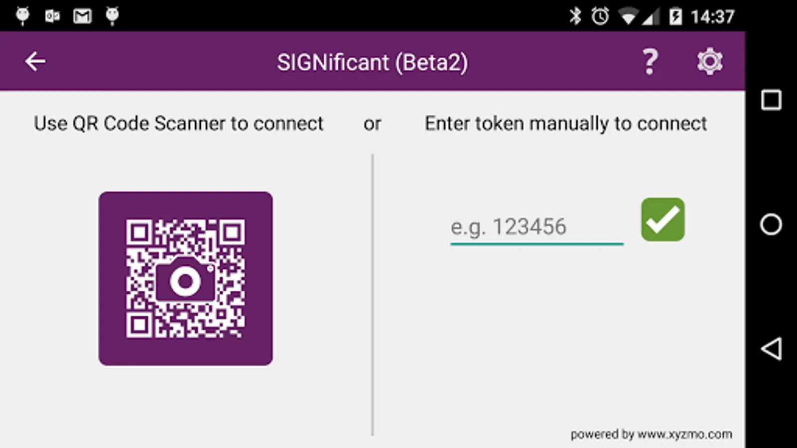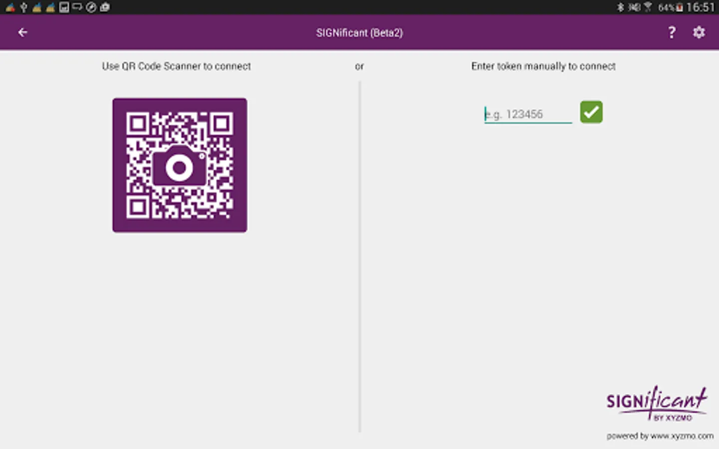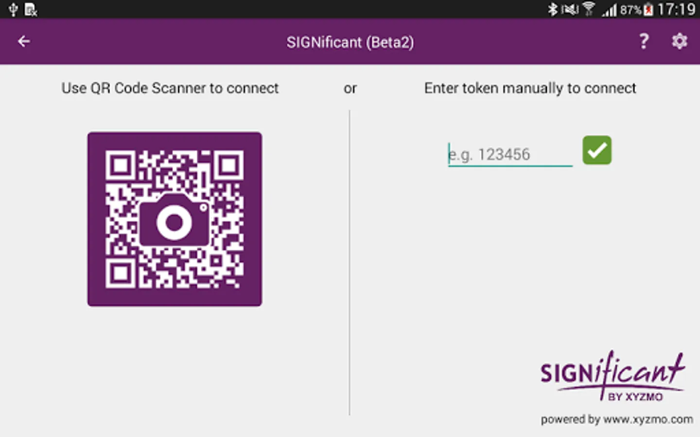 • Browser: Select the server in the App and scan the QR code in the browser or type in the token if you use the SIGNificant web application.
