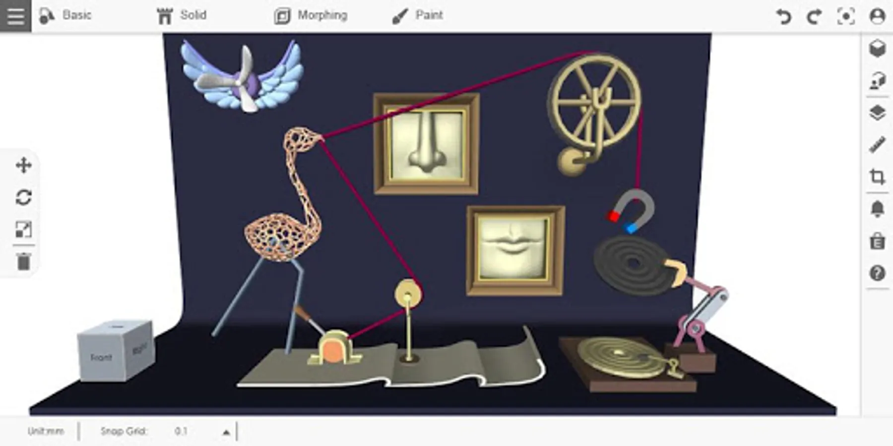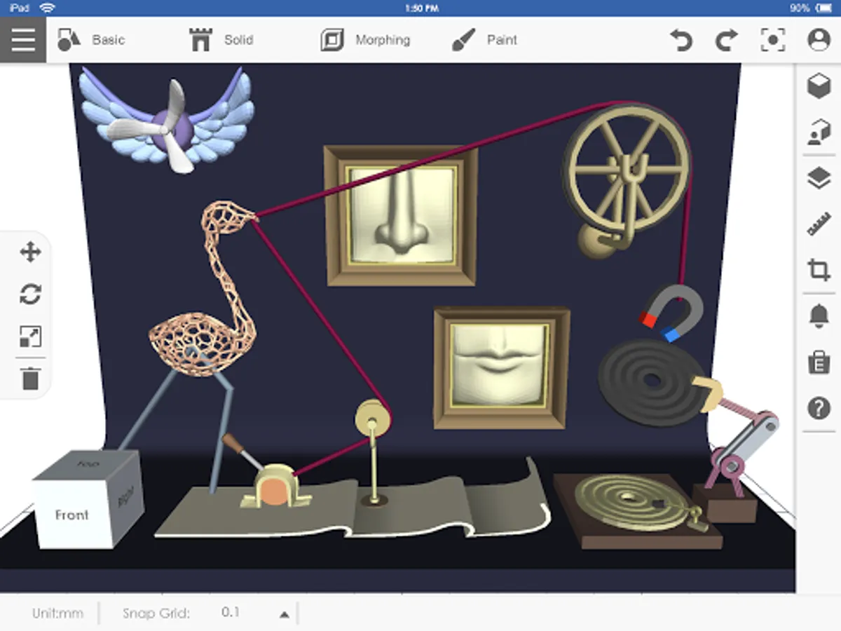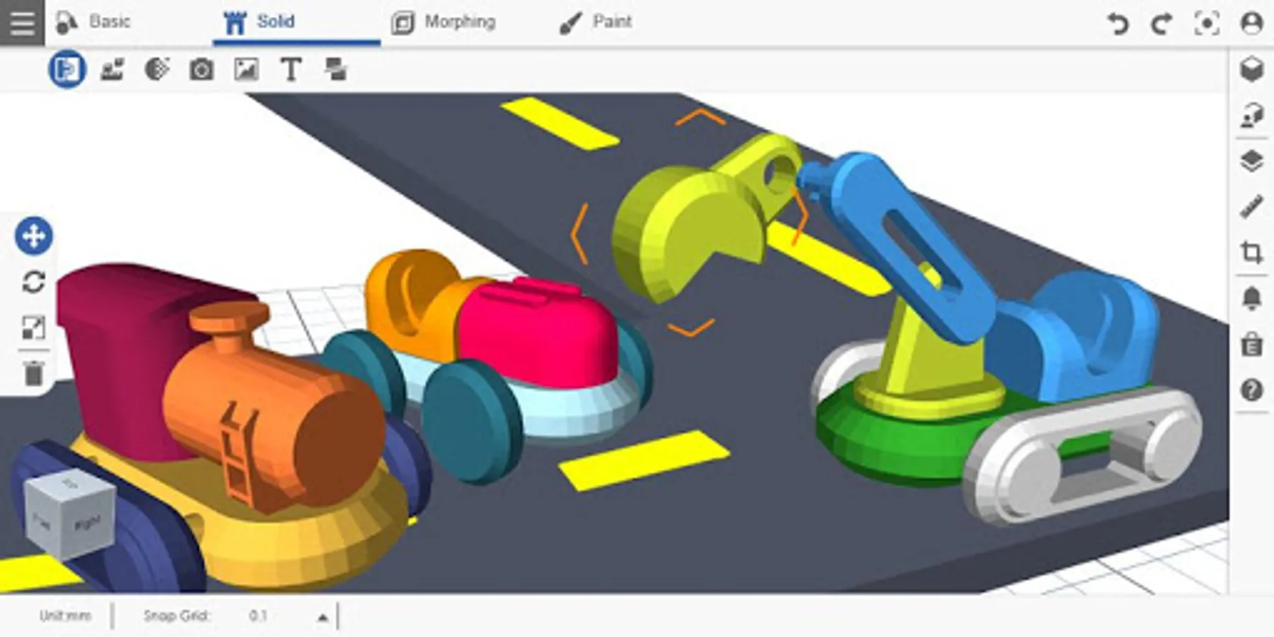 Designed for use in and out of the classroom, creating models is as simple as dragging 3D solids and other pre-designed parts from the menu, you can also use a variety of modeling tools – extrude, revolve, sweep, loft, and freeform to create diversity 3D models. Design your desired 3D models with a wide variety of 3D modeling tools. You can even upload your 2D photos and turn them into 3D embossed models.