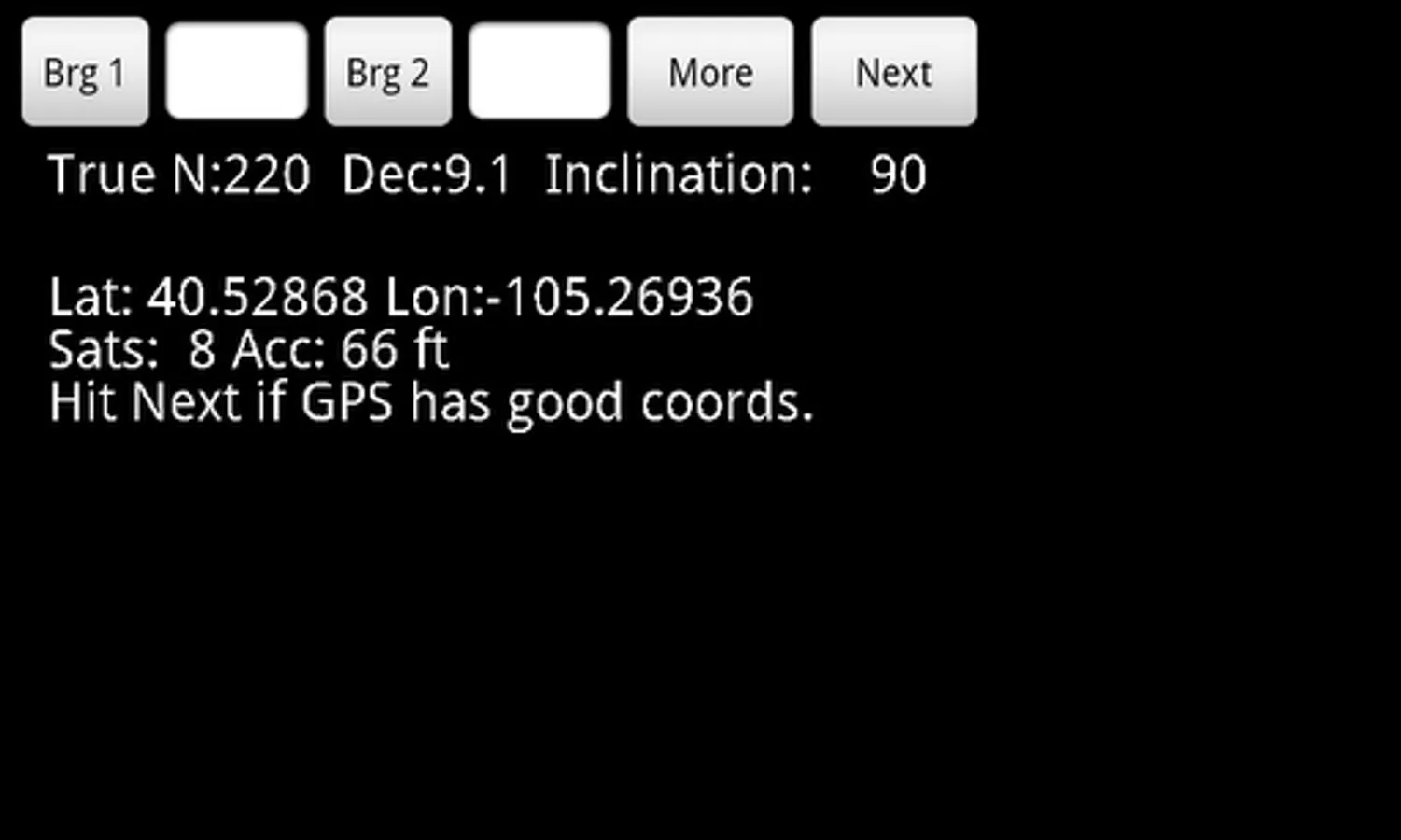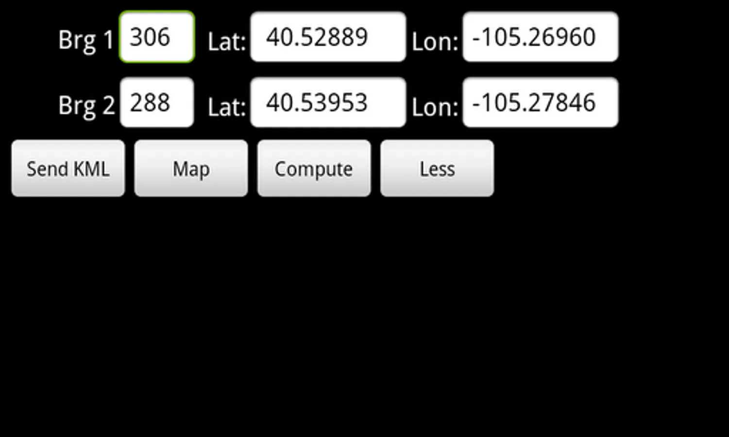 You can repeat and get bearings from more than 2 points and view them as overlays on a map too. That's why it saves the data as KML files so you can save as many bearings as you like and view them on the phone or desktop machine using many map programs, or email them to view with a bigger screen on desktop google maps.