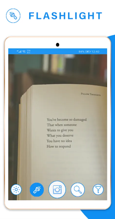 The flashlight has a brightness that turns your phone device into a led flashlight to magnify small photos with full focus.
