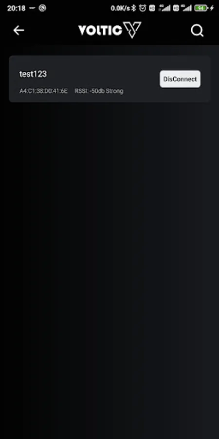 5) APP will list batteries within signal distance on the "Device" page of "Real Time" tab, and you choose which one you want to view. You may disconnect and connect to another battery on the Device page.