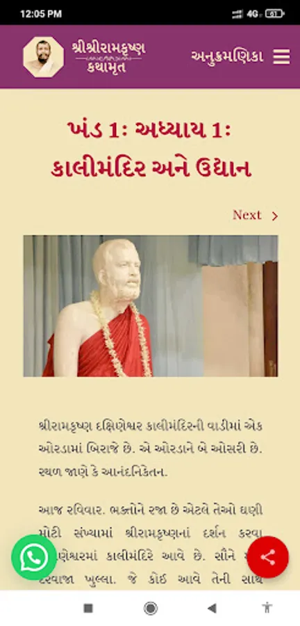 The nectarine teachings of Yugavatar Sri Ramakrishnadev were transcribed by his disciple Shri Mahendranath Gupte (Shri 'M'). Original Bengali teachings have been translated into Gujarati and published by Sri Ramakrishna Ashram, Rajkot. Shrima Shardadevi writes to Shri 'M' in a letter.