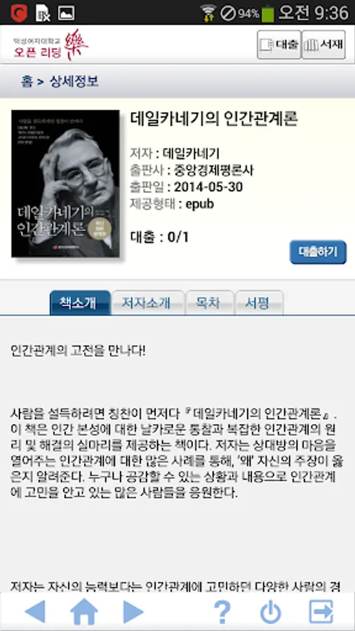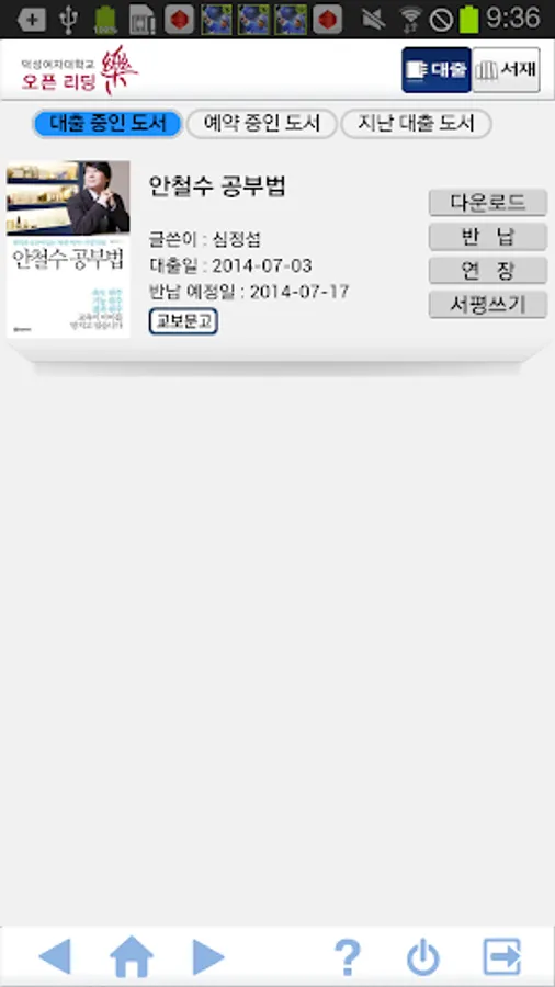 Members of Women's University e-library loans virtues one user authentication services to target the e-book. Search for e-books, lending through the smart phone is available anytime, anywhere reading books.