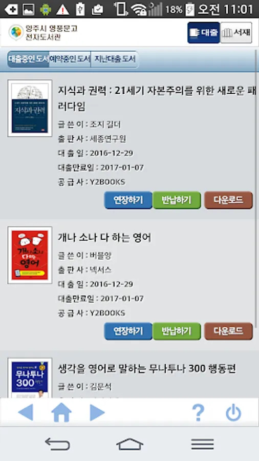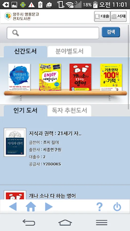 Yangzhou provides authentication services for e-book users by e-library loan Youngpoong library members. Search for e-books anytime, anywhere via a smartphone with any loan, you can be reading.