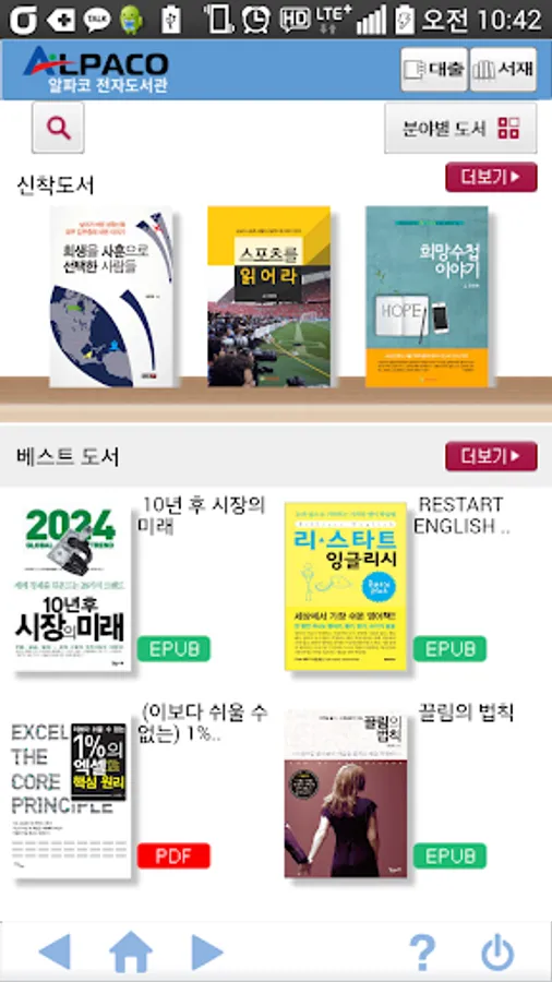 Provides services for e-book users to authenticate e-library loan nose Alpha members. Search for e-books, lending by reading through the smartphone is available anytime, anywhere.