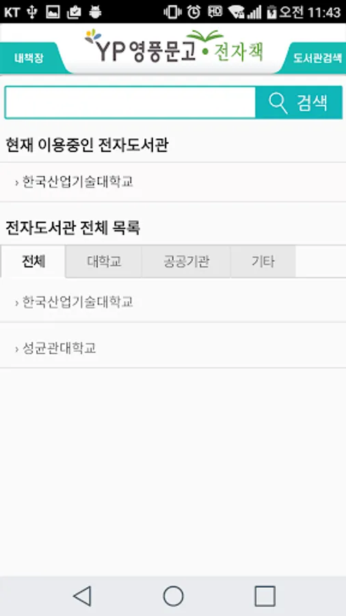- Use the library to check possible can check by clicking on the "Youngpoong Bookstore Electronic Library" run the air upper left [Library Search button.