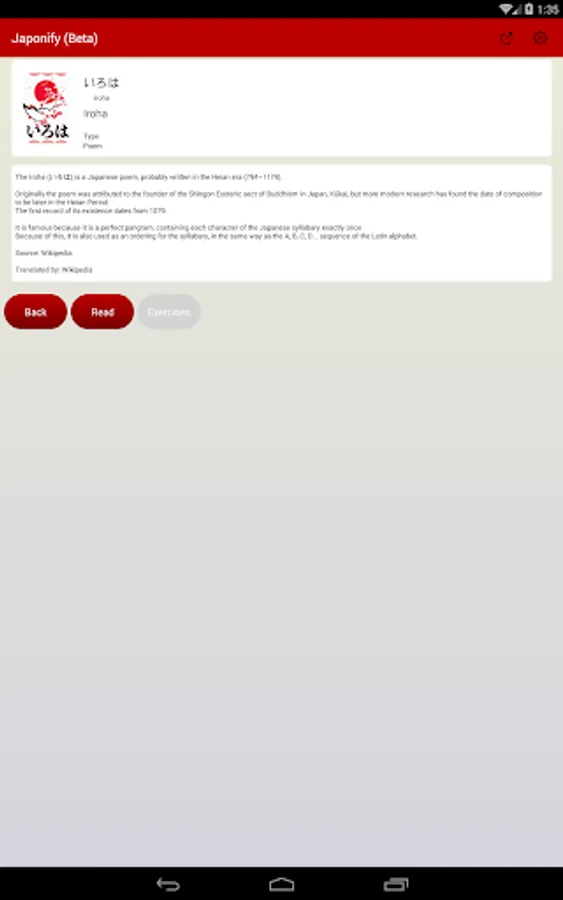 This app mainly for beginners in Japanese, it's also for those who want to practice (read Japanese) and learn new vocabulary.