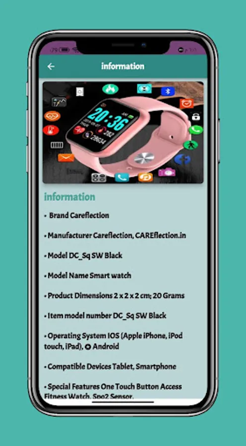 An app Y68 smart watch that gives you information about Y68 smart watch