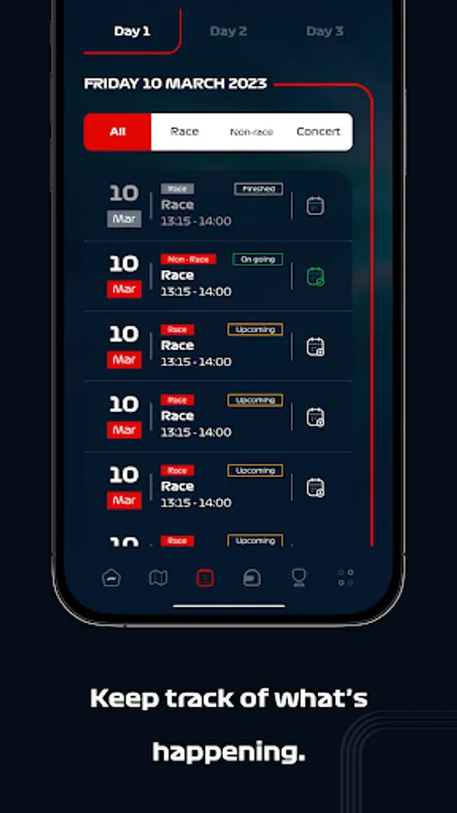 - See all of the race, event and concert schedules and set reminders to make sure you don’t miss a thing!