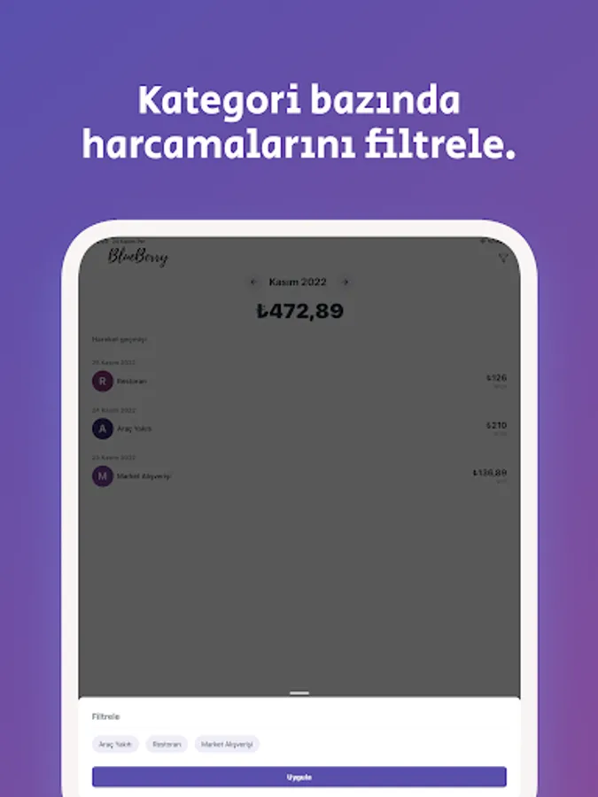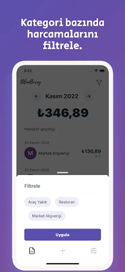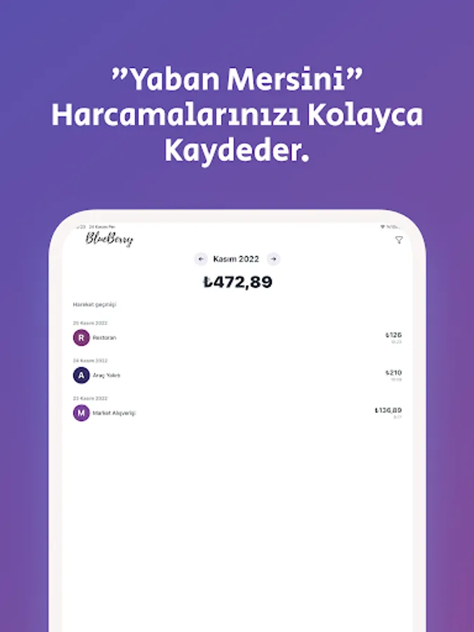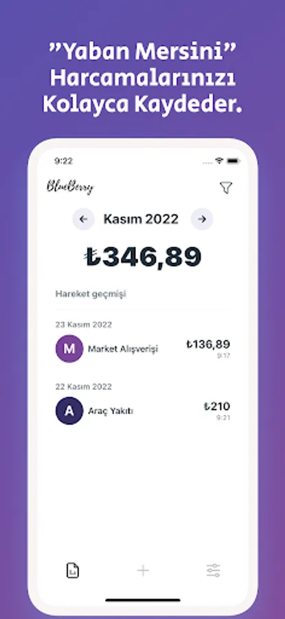 Blueberries ; a tool that allows you to easily record your expenses on the basis of simplicity, simplicity and speed. Easily manage your budget with daily and monthly reports by recording your expenses on a category basis. It is only two steps to register with Blueberry, which has the simplest and simplest interface among budget tracking applications.
