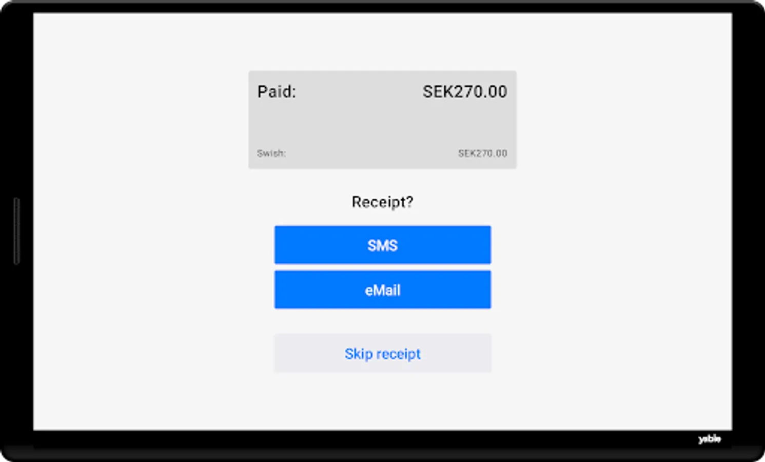 If your customer wants a receipt by SMS or e-mail, he can enter the number or e-mail address himself on the screen