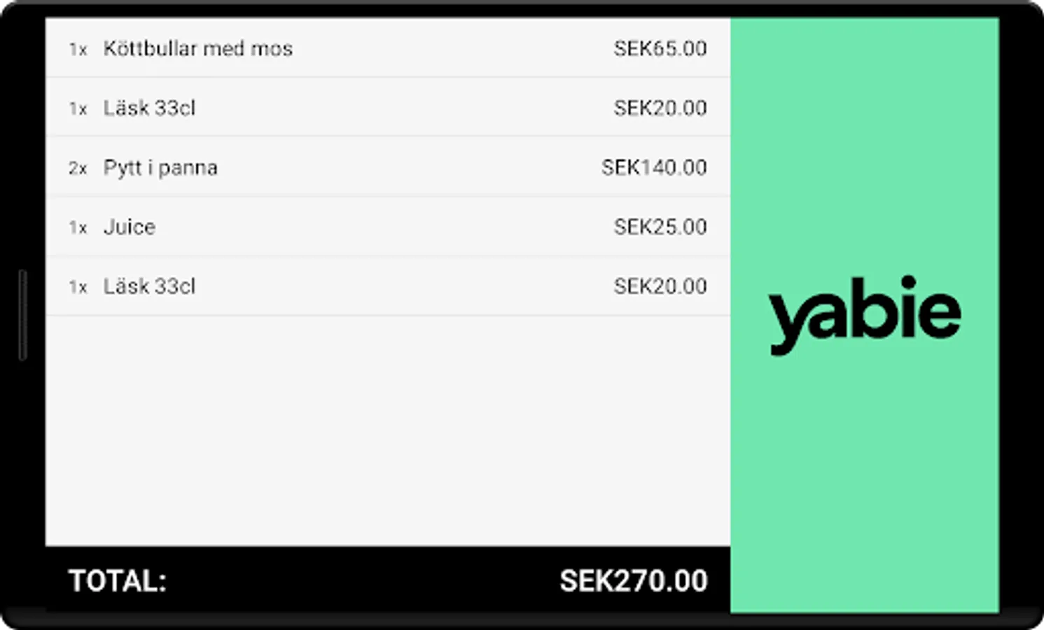 With Yabie's customer display, your customers have full control of what goes into your Yabie cash register and how much they have to pay.