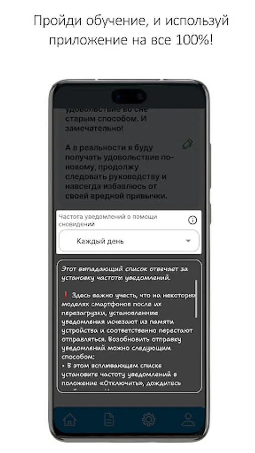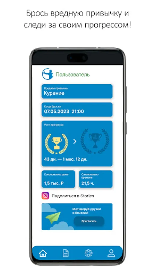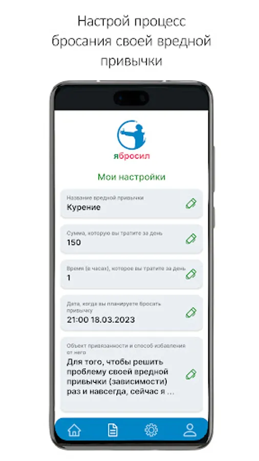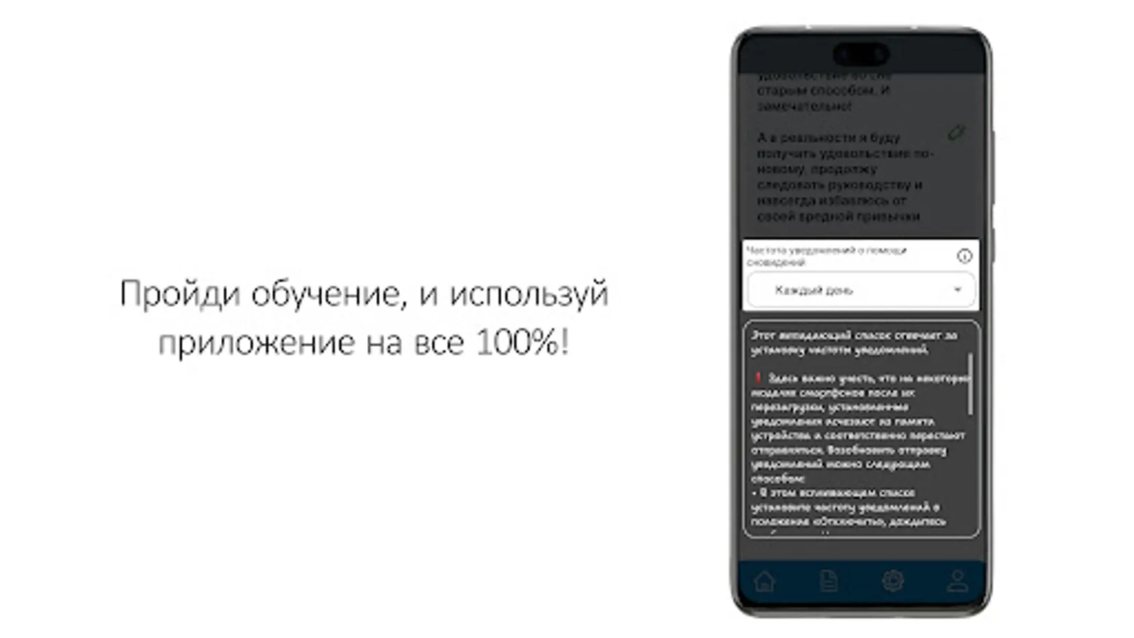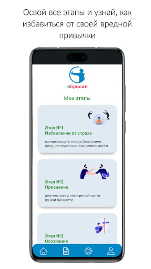Quit smoking or drinking, stop eating a lot in one moment is difficult. Almost impossible. Not everything is so simple: the enemy is cunning, he will use your weakness and attraction, cravings and physical dependence. Therefore, you will work with the application competently, step by step. Gain knowledge, form motivation, start to perform specific actions and get results. Finally, stop smoking, drinking too much, and eating too much. Forever.