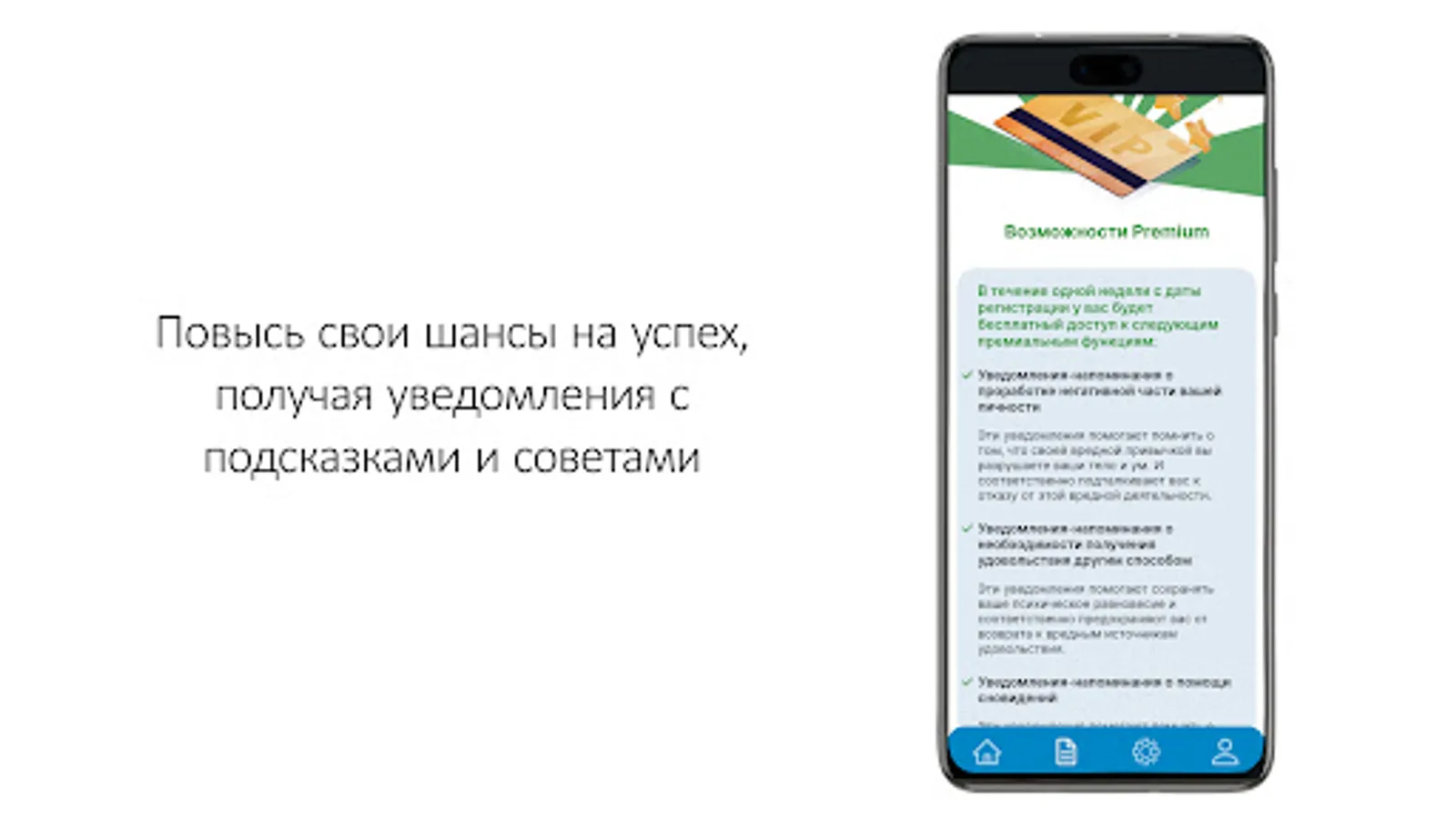 It's all about the right approach. The application does not promise mountains of gold and instant results. It does not act simply - only offering to quit drinking, smoking, stop eating a lot and after that count the profit, the time saved and rejoice.