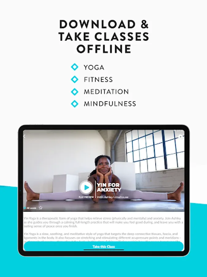 • Yoga, fitness, Pilates, barre, meditation, mindfulness classes and more