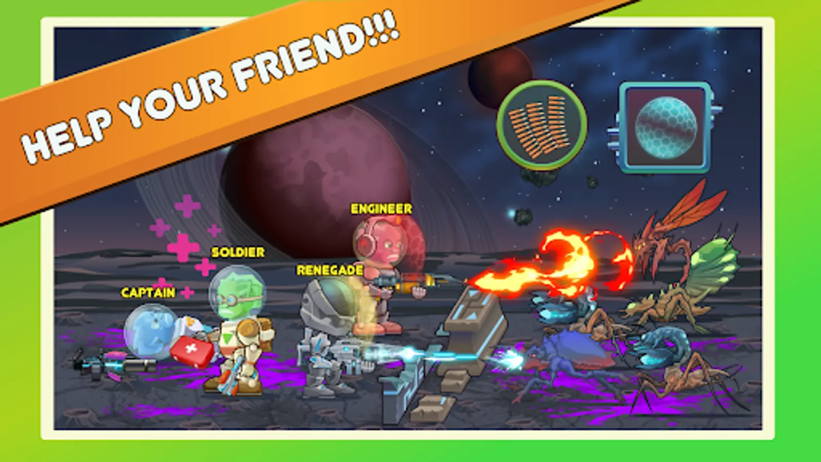 A legendary game that can be played by 2, 3, 4 players on the same device. Each player can choose a hero, upgrade it and play for it. Control in the game is distributed so that 4 players can play comfortably.