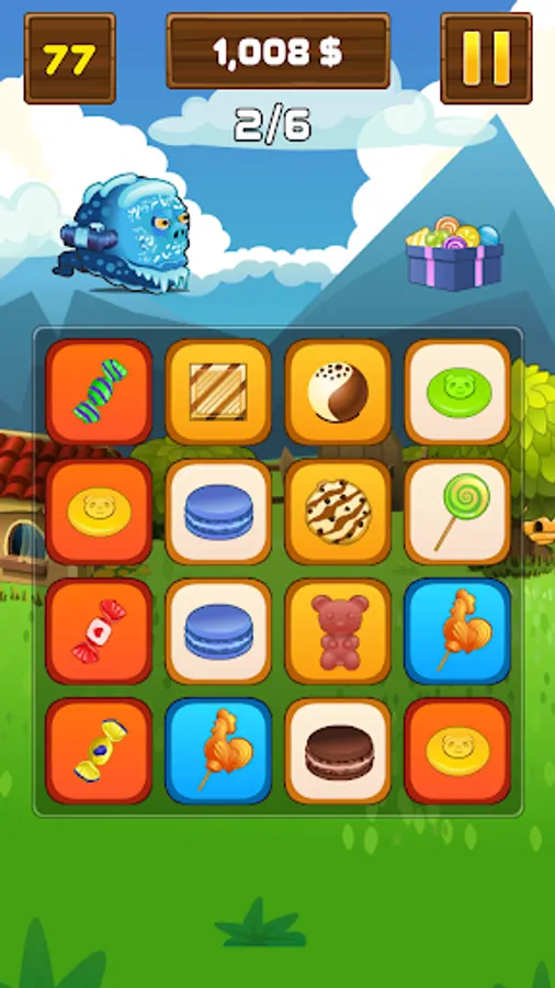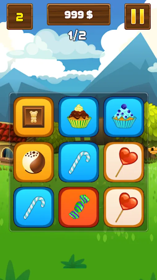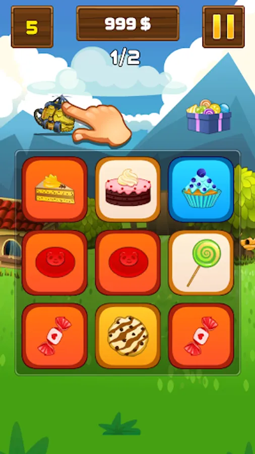 The logical game begins with the field of cards 3 to 3, where you need to find 2 pairs of identical pictures. With each pair of pictures found, coins are given. Gradually with each level the game becomes more complicated - the first monsters appear, which slowly move to the box of sweets and the field of cards gradually grows, starting from 4 to 4, 5 to 5 and so on. The player can spend coins on weapons (sugar bat, rolling pin, frying pan, cookbook, etc.) in order to more effectively fight with monsters, which with each level become stronger.
