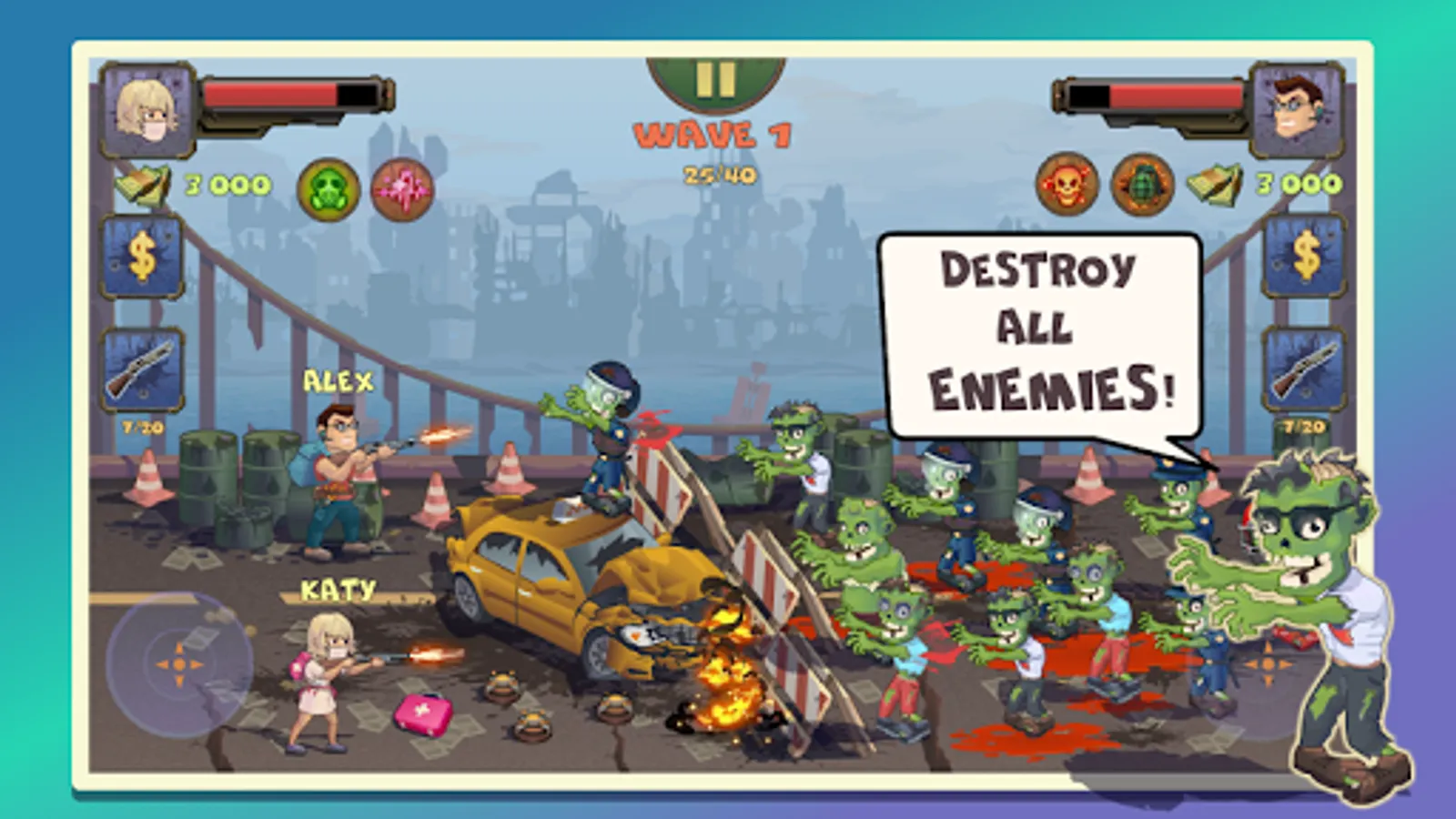 Two guys & Zombies 2 continuation of the game zombie shooter for two players. Play with your friend, brother or sister. The game allows two players to play on the same phone or tablet, and thanks to convenient controls, players will not feel discomfort.