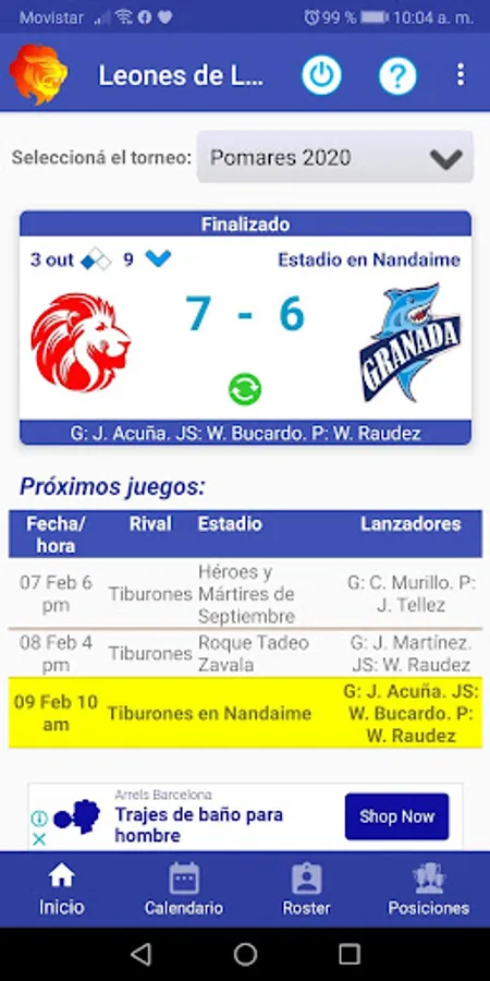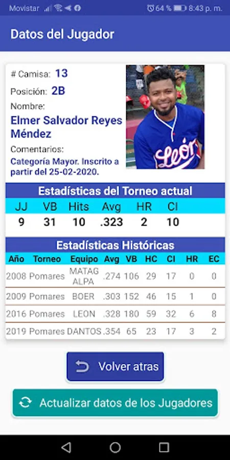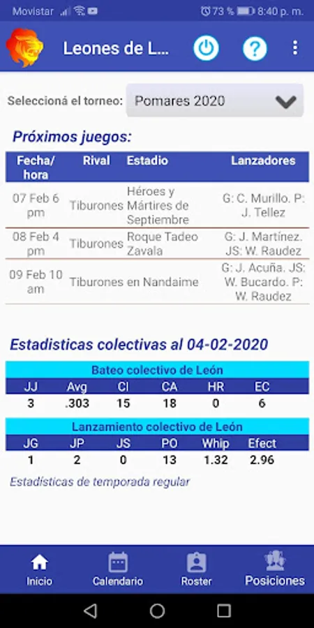- On the main screen, the collective statistics of the current Leones de León team tournament will always be available.