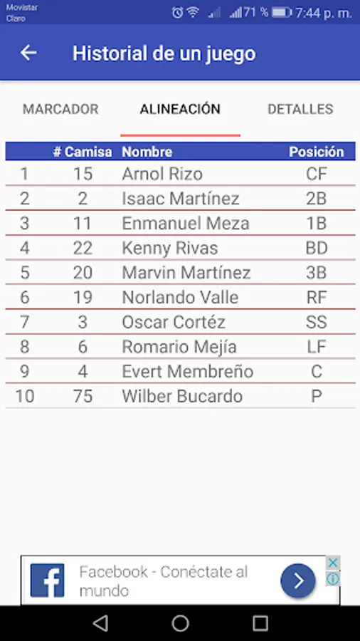- You will be able to see the scoreboard (Races, Hits, Errors) of the live game, as well as main data of the game (stadium, start time, if the game is broadcast on TV, Inning in which it plays) and the state of the game in general .