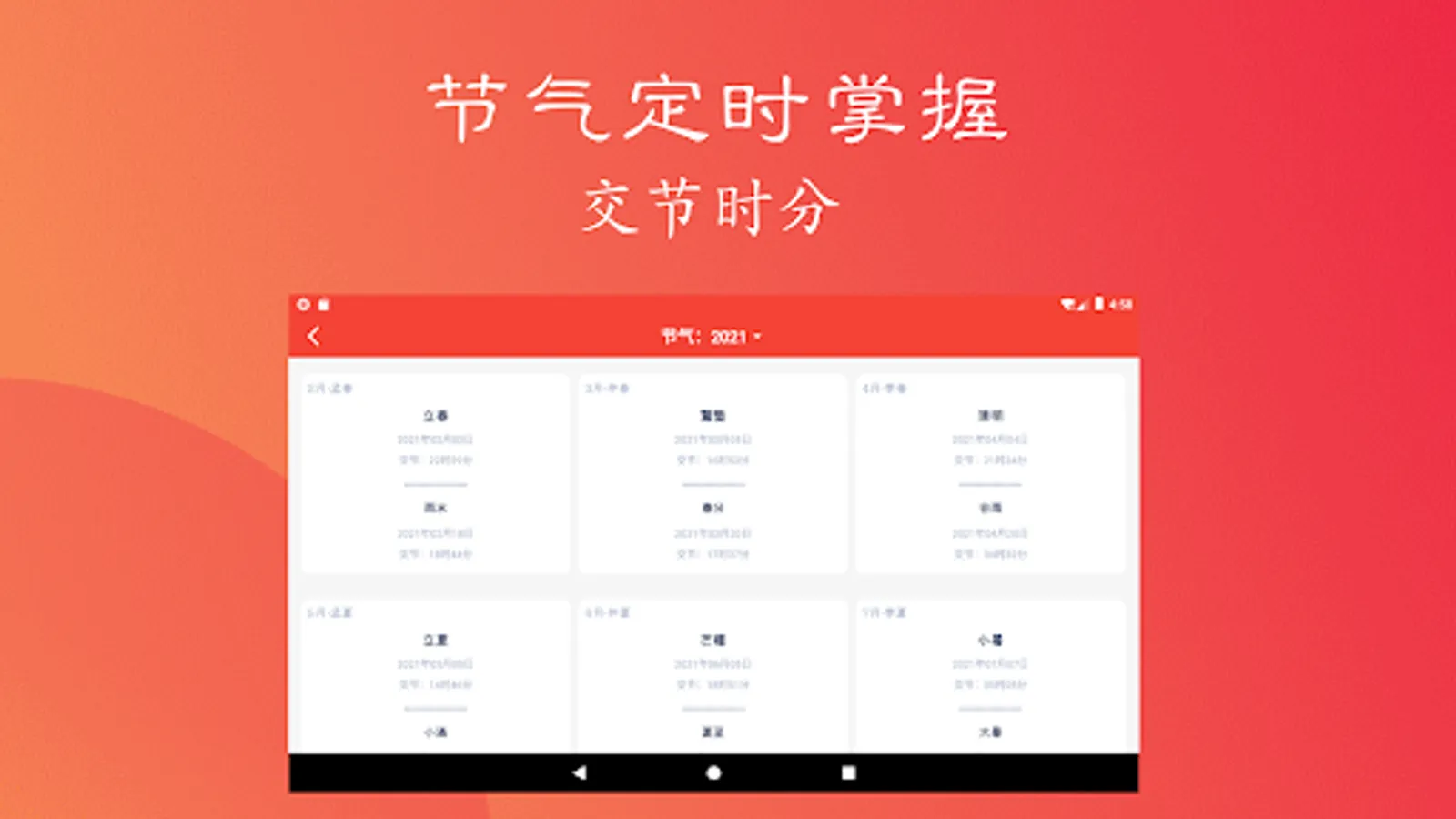 3 "Dance and Branch Chronicle Changes": Provides precise and accurate chronological changes of the stems and branches, rich date switching functions, compact and comprehensive information on the entire solar terms;