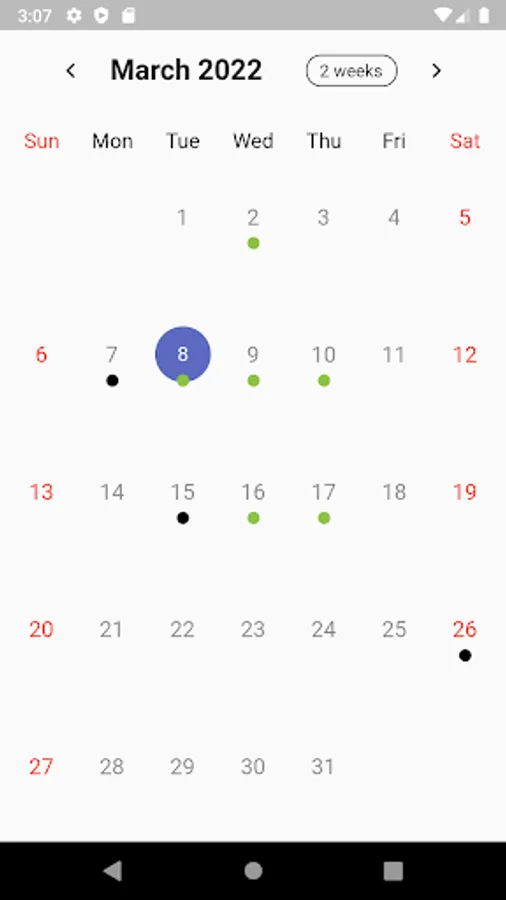 6. You can make todo more proud. When you complete all the todos for the day, the dot on the calendar turns green. Fill it with green as you work through all the to-dos.